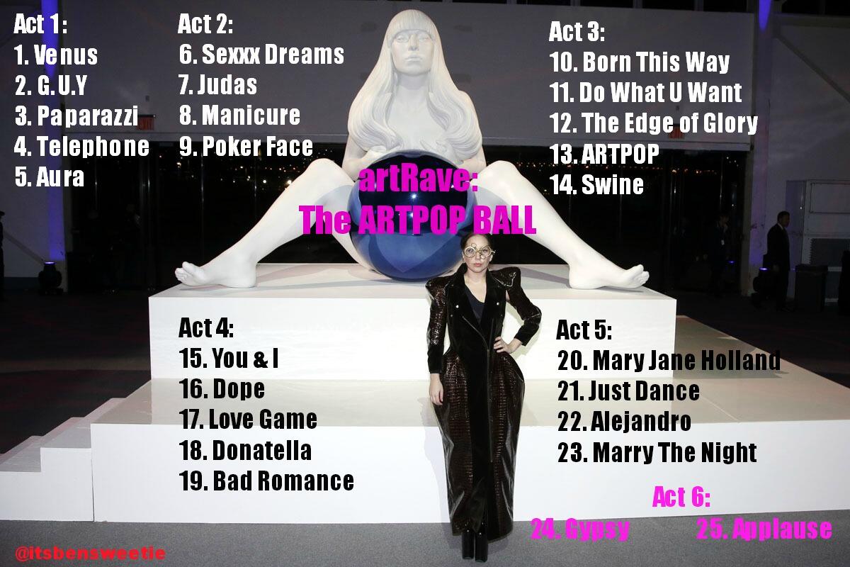 Lady Gaga Setlist For Her Artrave The Artpop Ball Tour